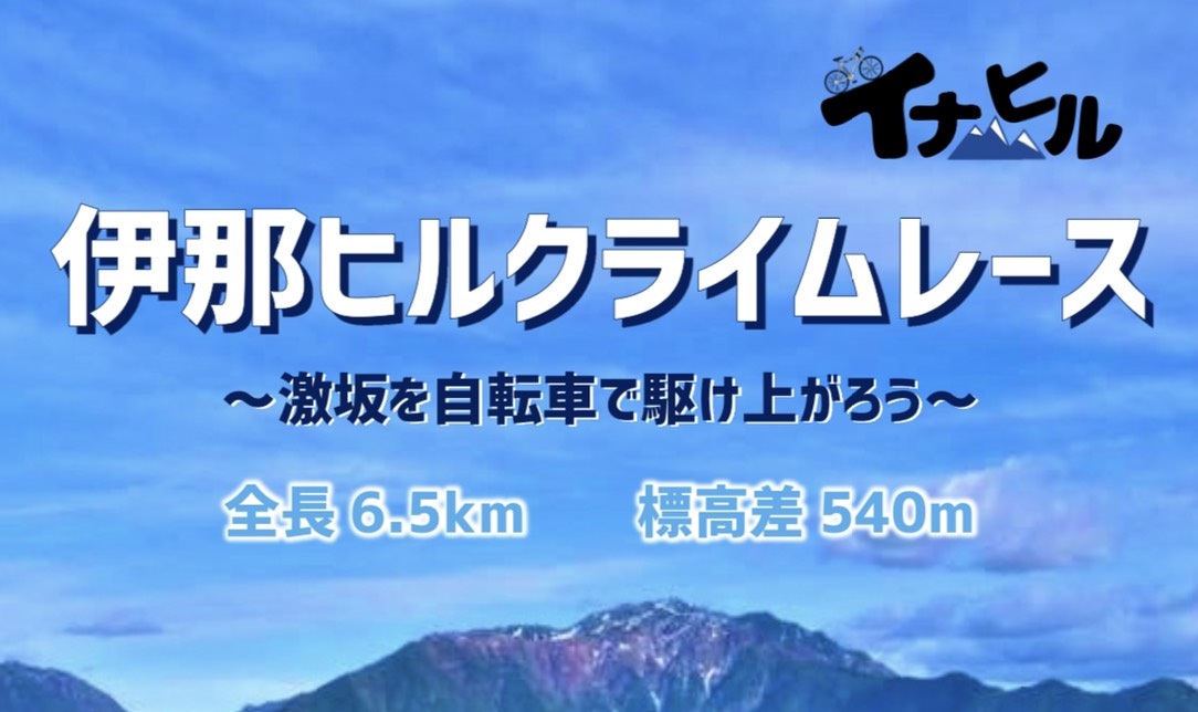 この伊那ヒルクライムレースは、新山のJA新山支所をスタートに新山峠近くの標高の一番高い地点がゴールの約6.5kmの公道をコースとする、のぼりのみを競う自転車レースです。