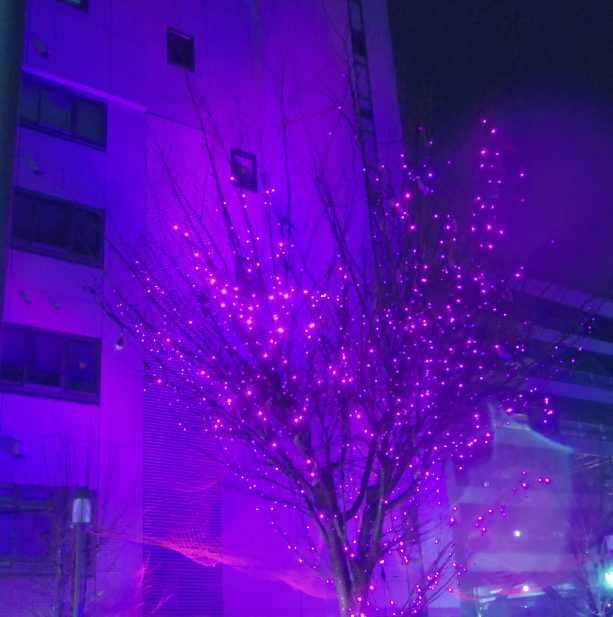 ライトアップされました。同時にいなっせ北側広場のけやきのイルミネーションも