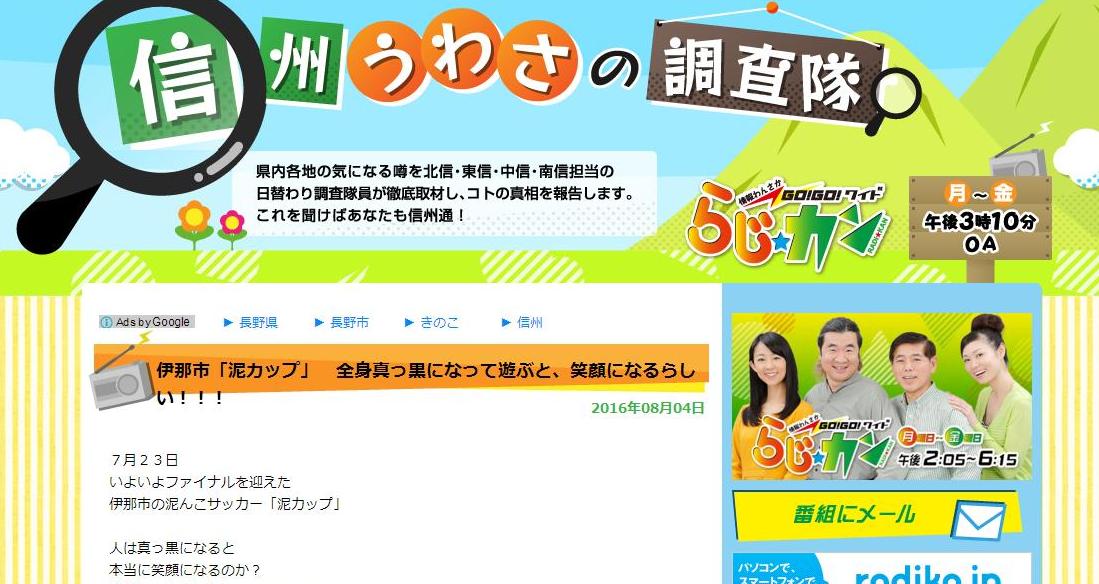 SBCラジオでどろカップが紹介されました 2025 7/16 イベント 2016年8月11日2025年7月16日 8月4日放送のSBCラジオ「らじ★カン」のコーナー「信州うわさの調査隊」で、7月23日に開催した「どろカップファイナル」の内容が紹介されました。 http://radikanchosatai.naganoblog.jp/d2016-08-04.html イベント この記事が気に入ったら いいねしてね! よかったらシェアしてね! URLをコピーしました! URLをコピーしました! 8月例会・伊那まつりDRAGON横丁(8/6) 9月30日公開セミナー「DMOが引き出す地域の稼ぐ力」のお知らせ 関連記事 9月例会 どろカップ2012in伊那 2012年9月7日 5月例会:福興応援バスの旅 2013年5月26日 7月例会:「三四六講演会」 2013年9月13日 2013年 6月例会:家族例会 2013年9月13日 アジ WA い~な !! 2014年6月24日 6月18日にどろカップとアジWAい~なの記者会見がありました。 2014年6月24日 どろんこサッカー全国大会 どろカップ2014in伊那 2014年6月24日 『おもてなしに商機!』~コミュニケーション力で現場のクオリティを改善~ 2014年6月27日