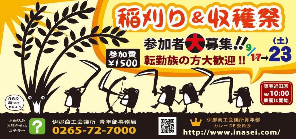 第60回記念伊那まつりが2017年8月5日・6日と盛大に行われました! 当青年部も5日、伊那市の中心市街地にてよさこい青龍さんよる演舞やお子様に人気の100円くじ、そして毎年好評をいただいております屋台村で盛り上げてまいりました! 大人も子どもも心に残... -