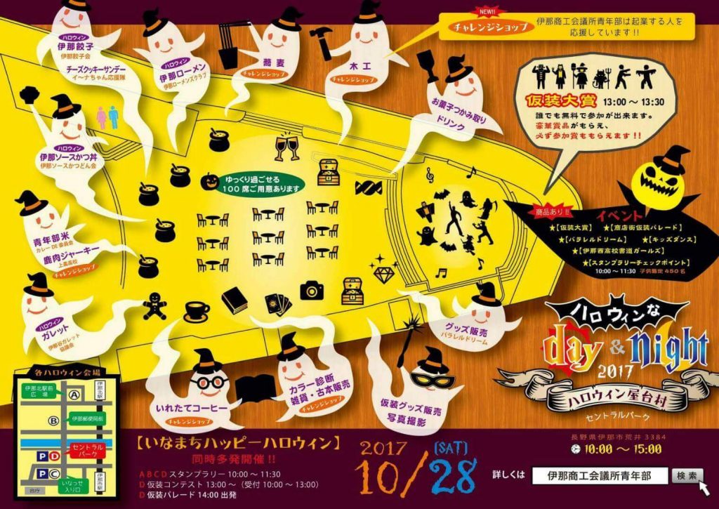 「ハロウィンなday & night 2017」今年も開催します! 昼の部ではセントラルパークにてイベントを開催します❗ ステージイベントは、「伊那西書道ガールズ」や「キッズダンス」、「パラレルドリーム」などがあります! 様々なチャレンジショップ... -
