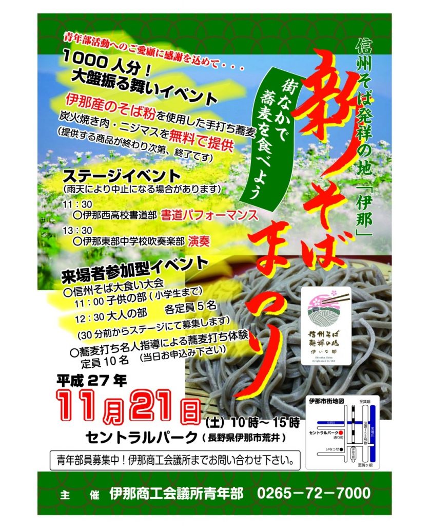 街なか 新そばまつり すがすがしい秋晴れの中、多くの方に足を運んで頂きました。 ありがとうございました。 部長 宮下より開会のあいさつ 大勢の方にご参加頂きました。 子供たちのそば大食い大会 そば打ち体験 伊那西高等学校 書道部の皆さん... -